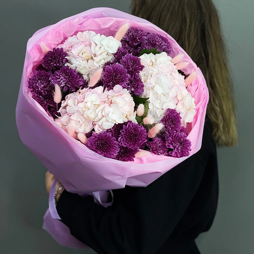 Букет "Фиалка" из гортензий и хризантем